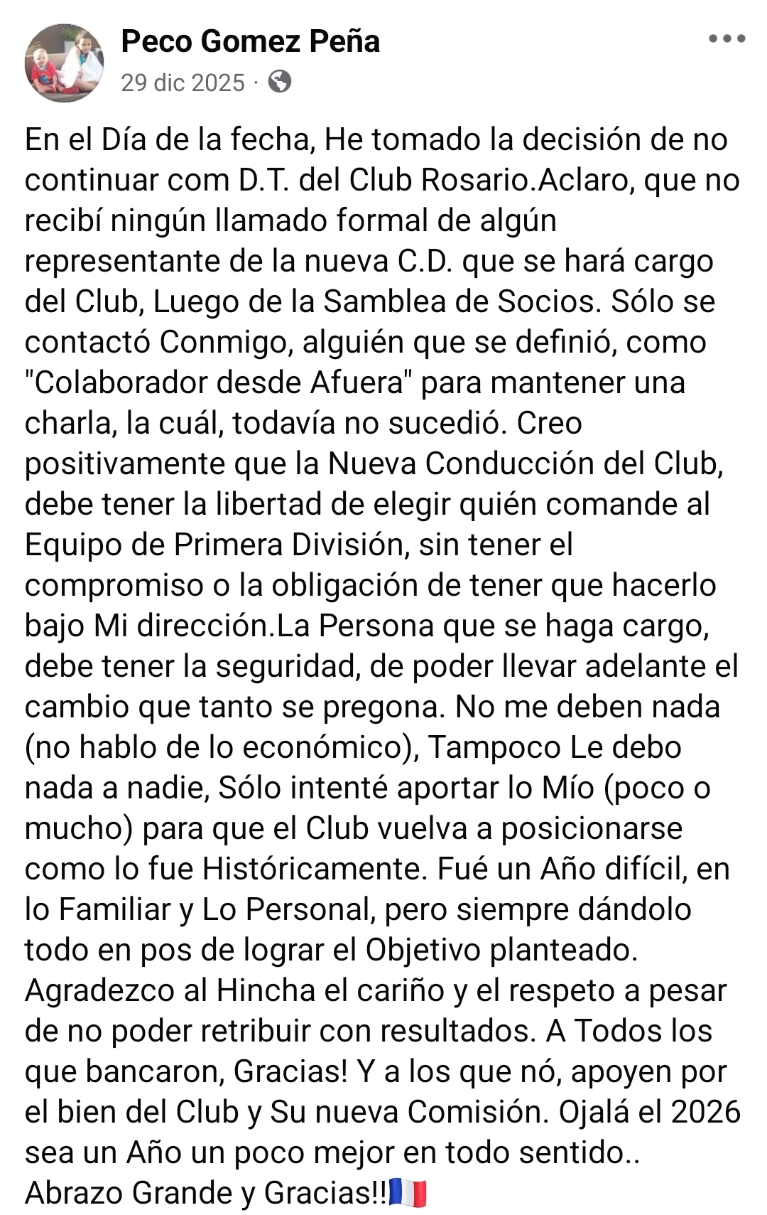 Rosario es otro de los que varió su Director Técnico. En el elenco puntaltense asumió la nueva dirigencia y se encontró con la renuncia de Federico Gomez Peña