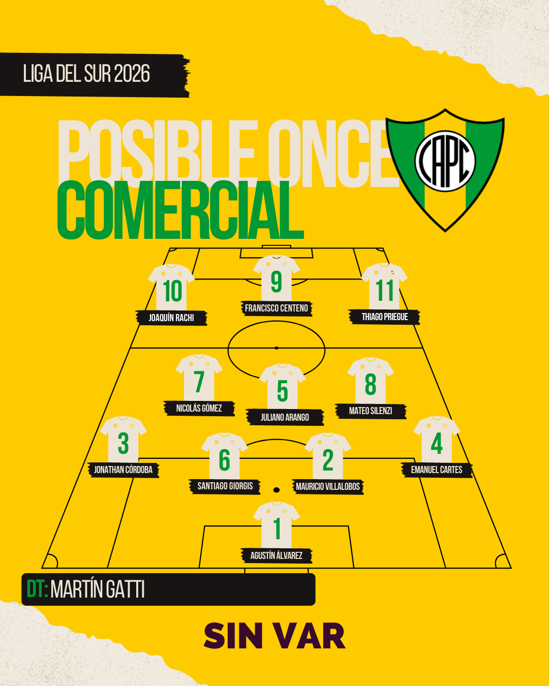 No es información y es solamente un juego que hacemos en Sin Var sobre como formaría cada equipo. Lo vamos a llevar a cabo con cada plantel de la Liga del Sur.